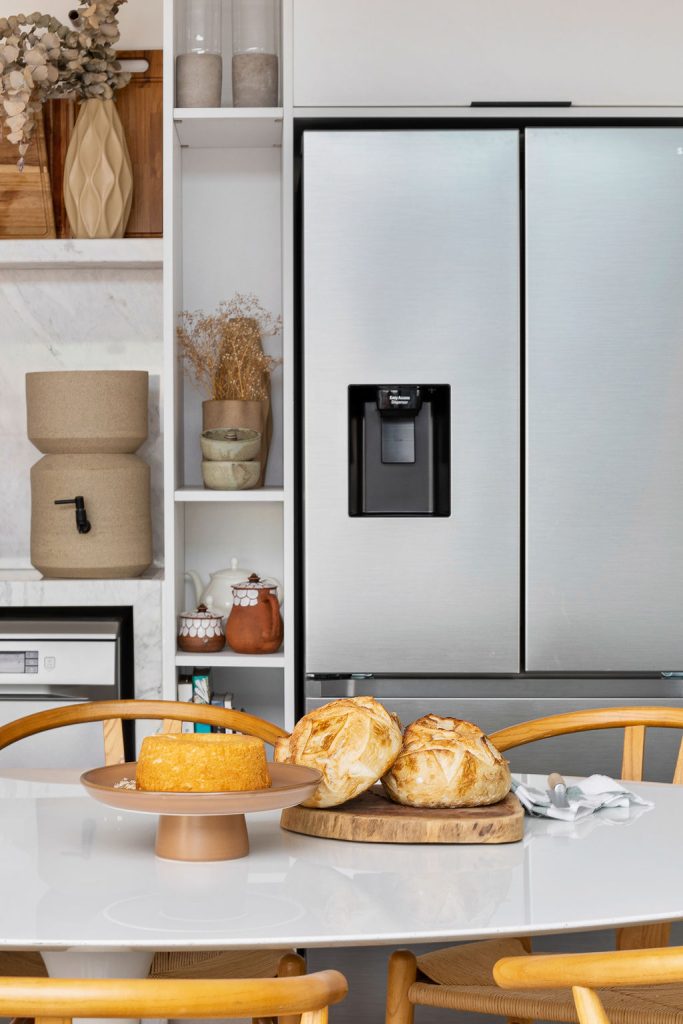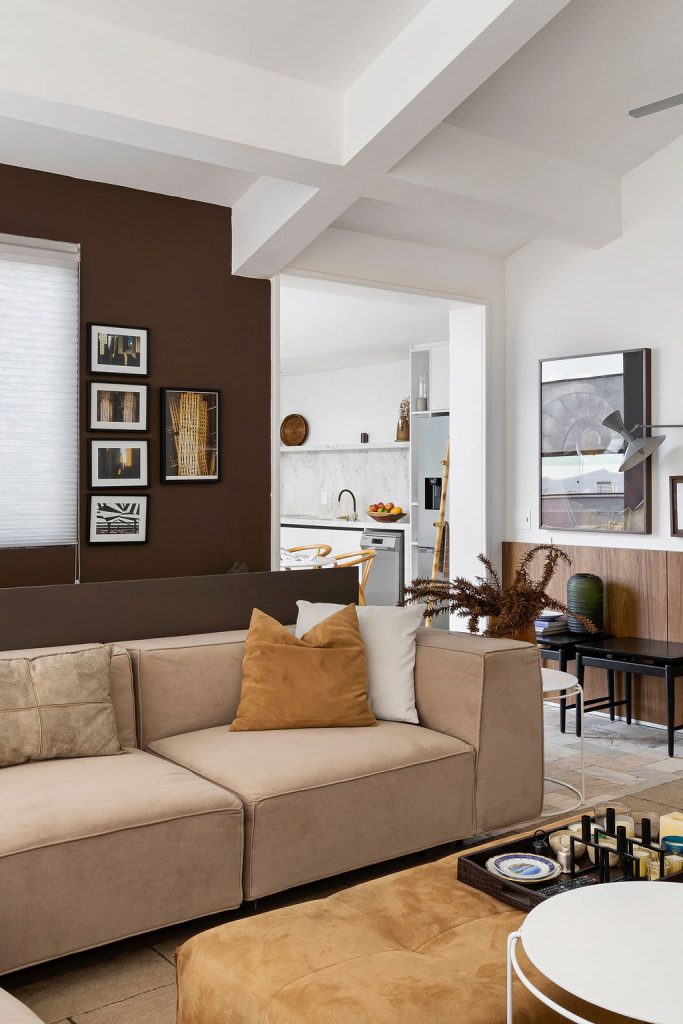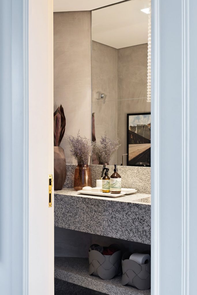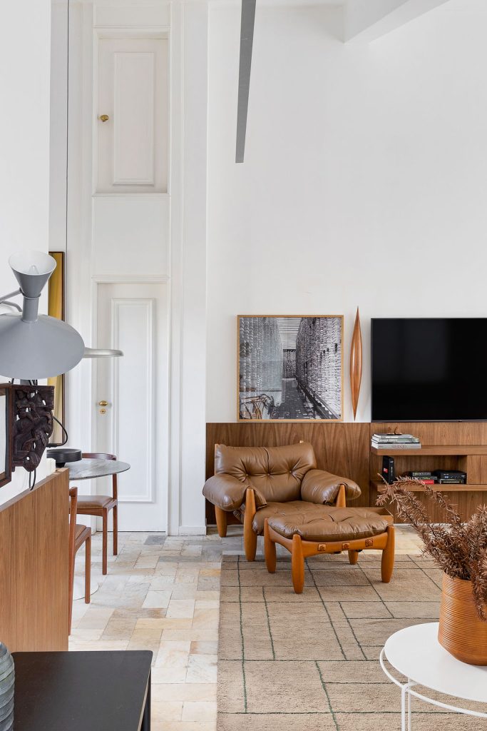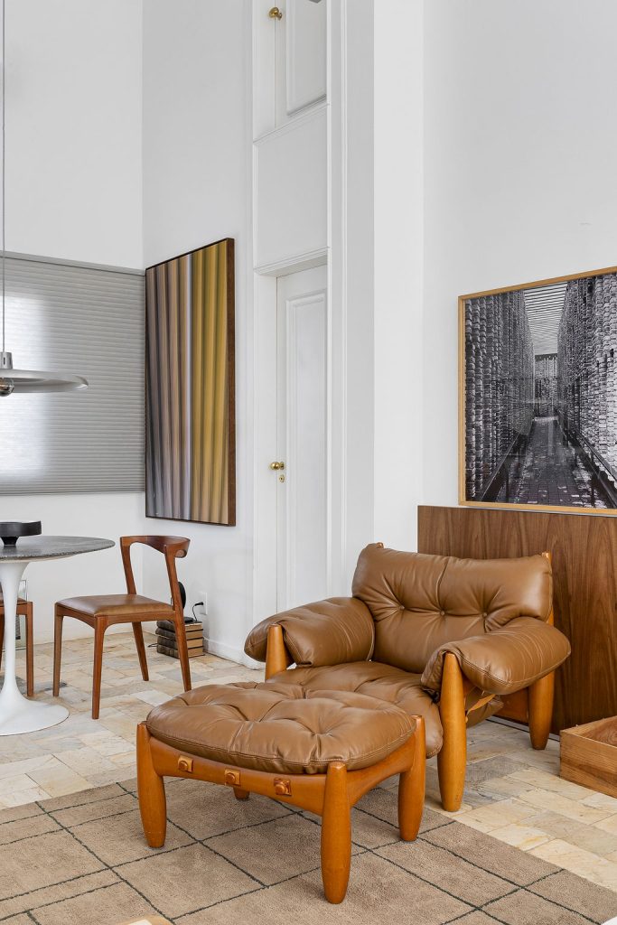 Foi feita uma reforma que preservou muitos materiais e deixou o apartamento bem mais atual.